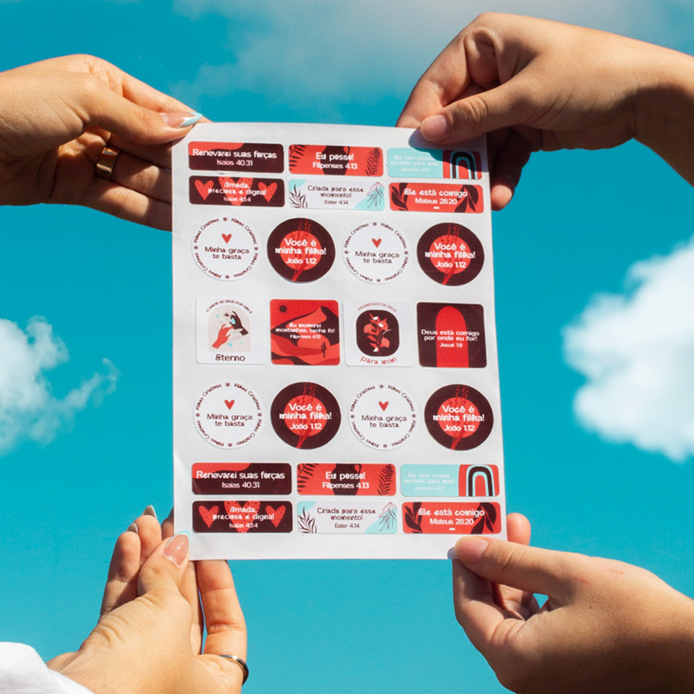 Pequenos detalhes que transformam seu tempo com Deus! A Cartela de Adesivos Filhas Criativas foi criada para inspirar, decorar e tornar seus momentos devocionais ainda mais especiais.